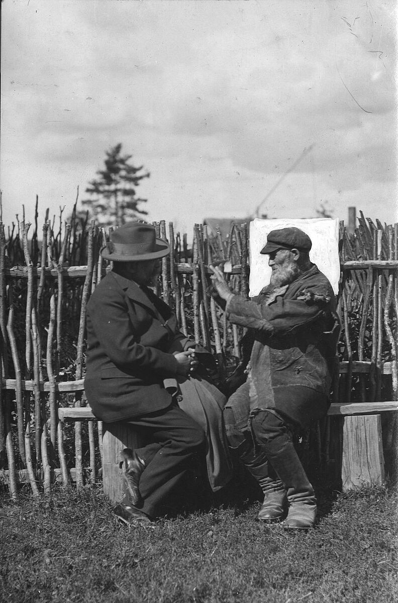 Two men seated on a bench, Pervomaisk, Belarus, 1920s-1930s.