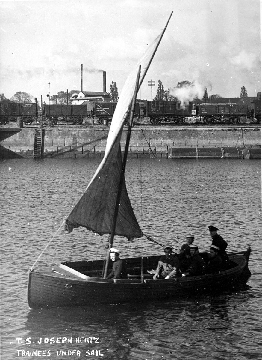ORT T.S. Joseph Hertz trainees under sail, Thames Estuary, England, 1946.