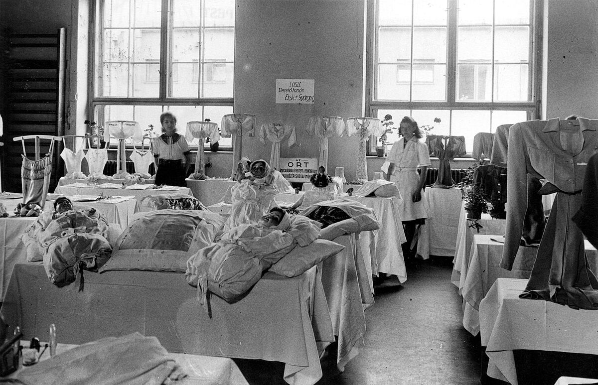Exhibition of ORT students' needle craft work, Budapest, Hungary, c. 1947. Photo credit: Diskai - Mona Lisa Foto Studio. Archive Ref. p05a167