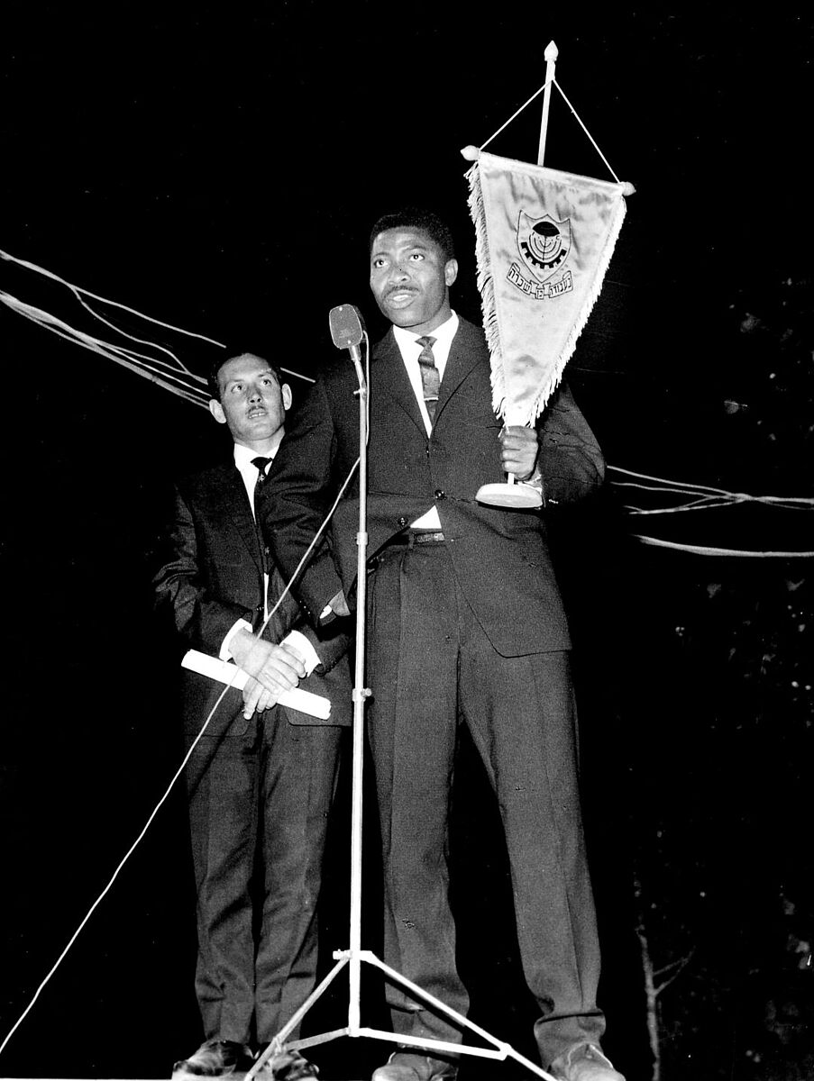 Graduation at ORT International Centre for African Youth, Netanya, Israel, June 1964. Ceremony of transferring the emblem of the ORT Israel Technical Institute by the graduating class to the 2nd year class. Photo credit: Photo Stieglitz, Netanya. Archive Ref. p03a717