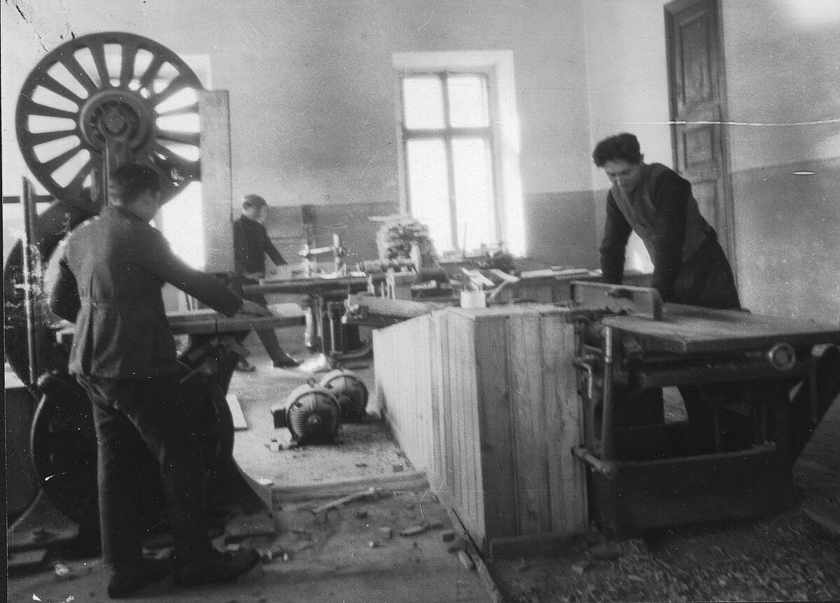 Workshop in Chisinau [Kishinev], Bessarabia, Romania [now Moldova], March 1928. Joinery and cabinet-making workshop named after B. Temkin. Archive Ref. psa0825