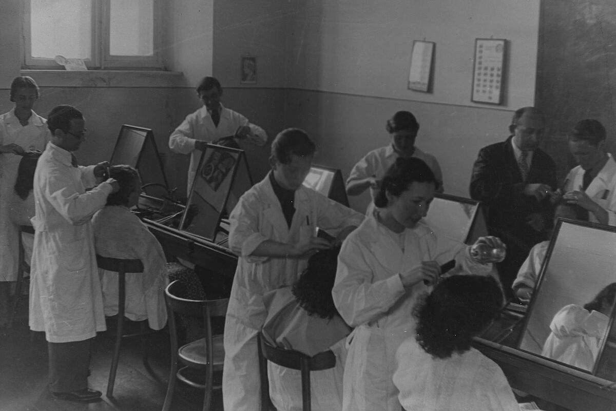 Hairdressing course, Lodz [?], Poland, 1920s-1930s.