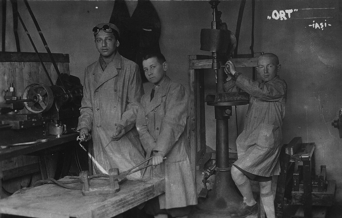 Boys welding in an ORT workshop in Iaşi [Yas, Jassy, Iassy], Romania, 1920s-1930s.