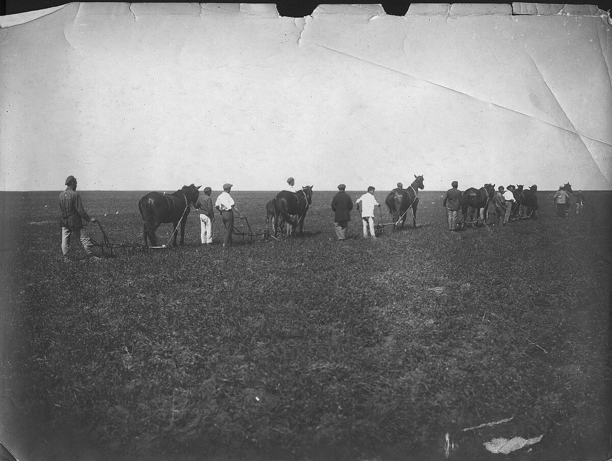 Jewish colonists in the Ukrainian SSR, USSR [now Ukraine] 1920s-1930s. Jewish colonist ploughing a field with horses Archive Ref. psa0724