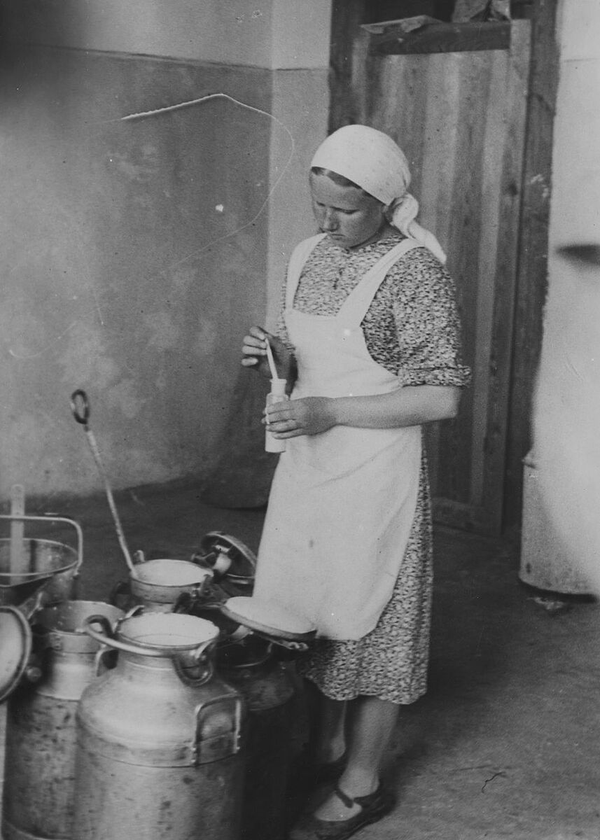 Testing sour cream in Rafalovka, Poland [now Rafalivka, Ukraine], 1920s-1930s. Archive Ref. psa1147