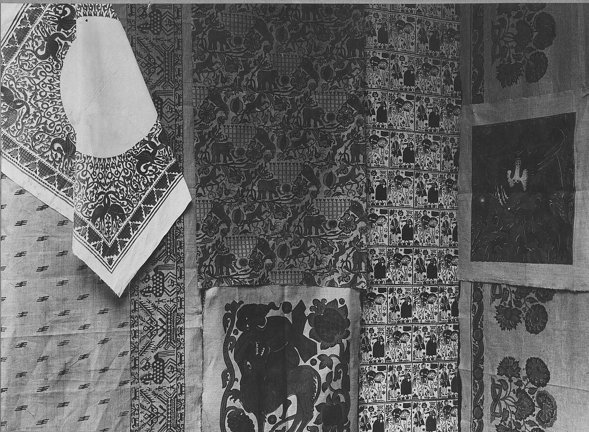 Textile work from ORT in Yevpatoriya [Eupatoria, Kezlev], Crimea, RSFSR, USSR, 1920s. Work from an ORT instructors' workshop. Archive Ref. psa1749